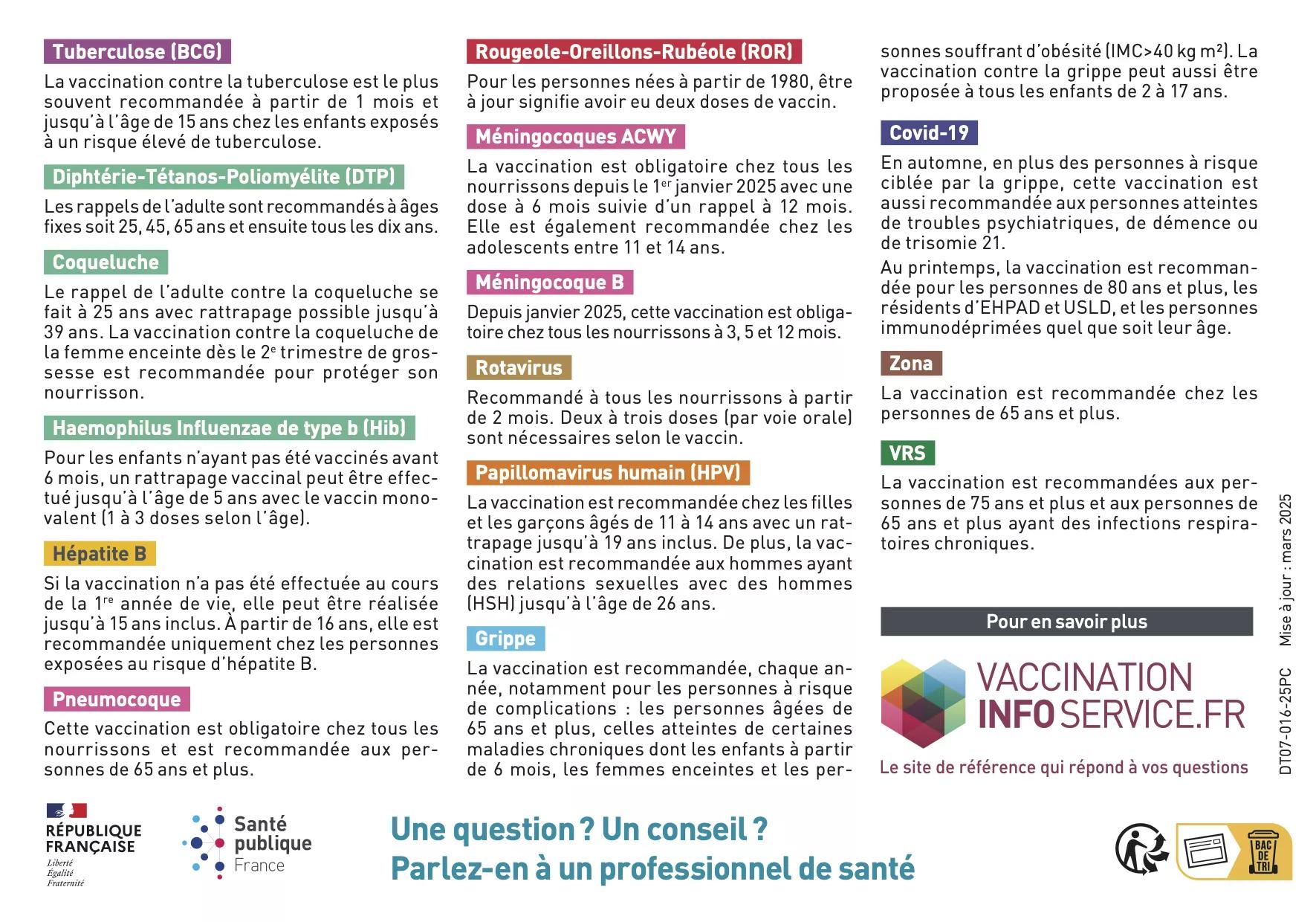 Toute la vie, en fonction de votre âge et de votre situation, il existe différents vaccins pour se protéger de maladies graves. Pour vérifier si vous êtes à jour dans vos vaccins, le calendrier vaccinal est là pour vous aider !