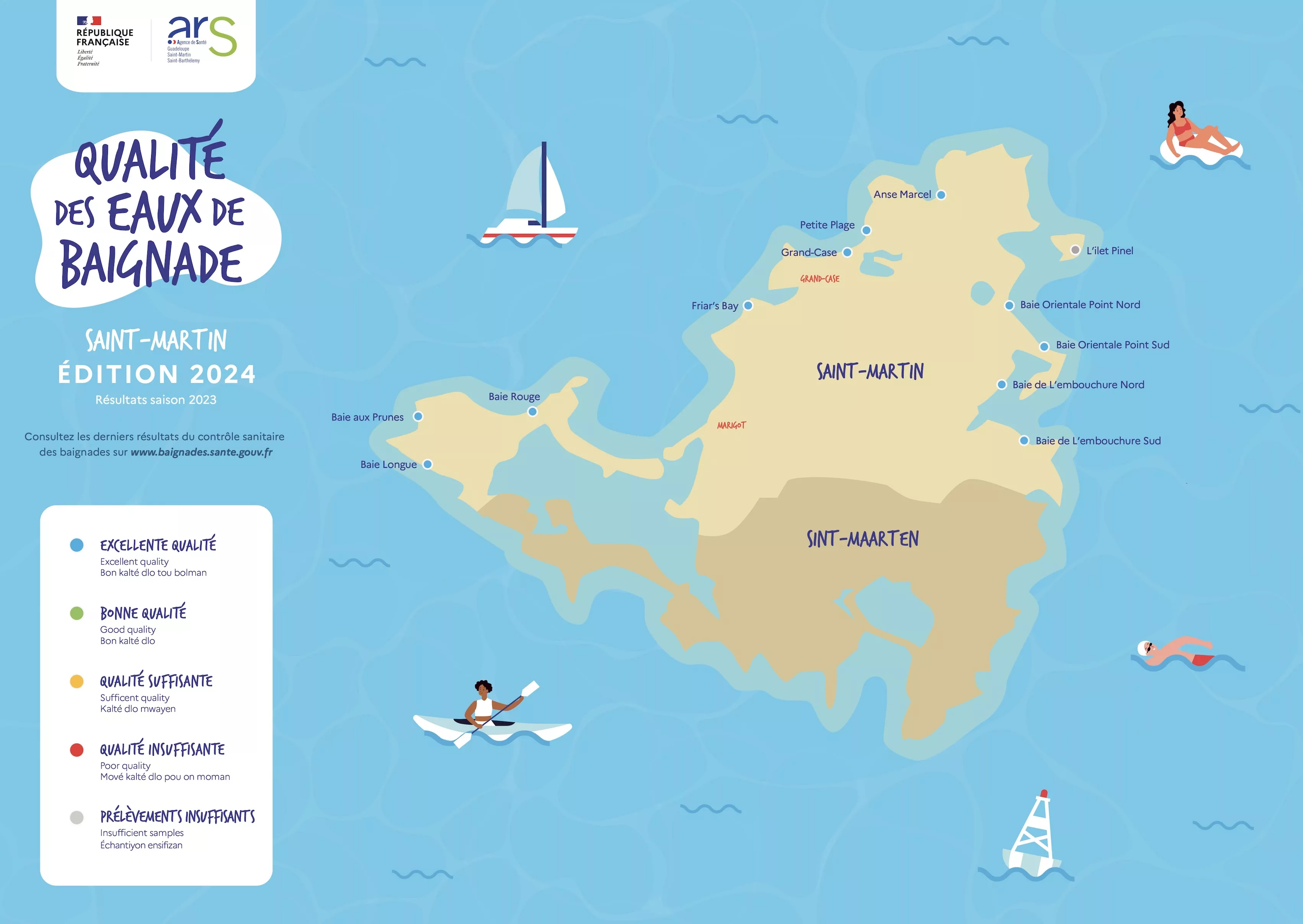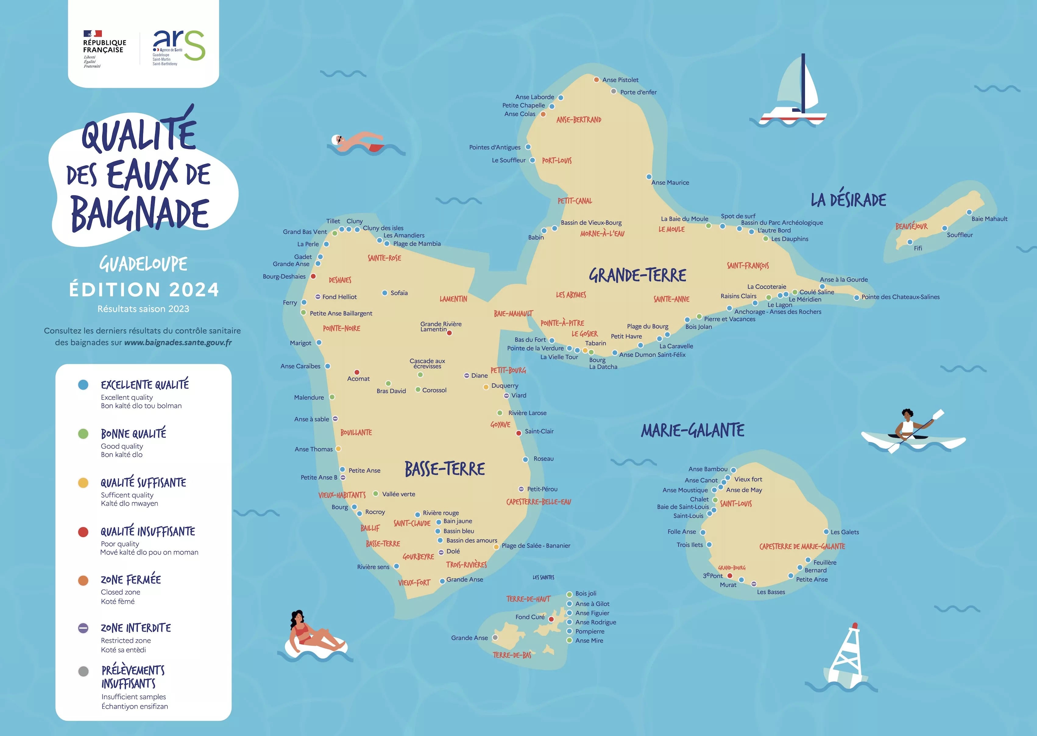 L’Agence de Santé de Guadeloupe, Saint-Martin, Saint Barthélemy assure le contrôle sanitaire régulier de l’ensemble des zones de baignade déclarées en Guadeloupe et dans les deux collectivités d’Outre-Mer : Saint-Martin et Saint Barthélemy.